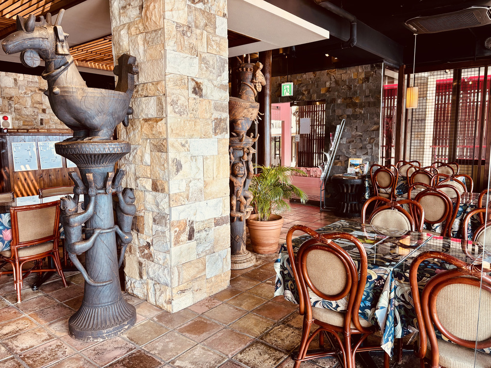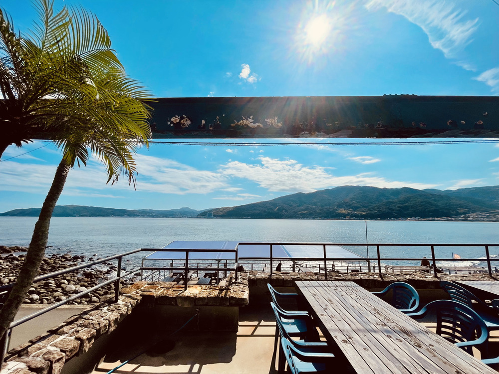 目の前には、青い海が広がり、まるでバリ島のリゾート地に来たかのような、開放感あふれる空間になっています。特に人気の、海に面したテラス席は格別です。