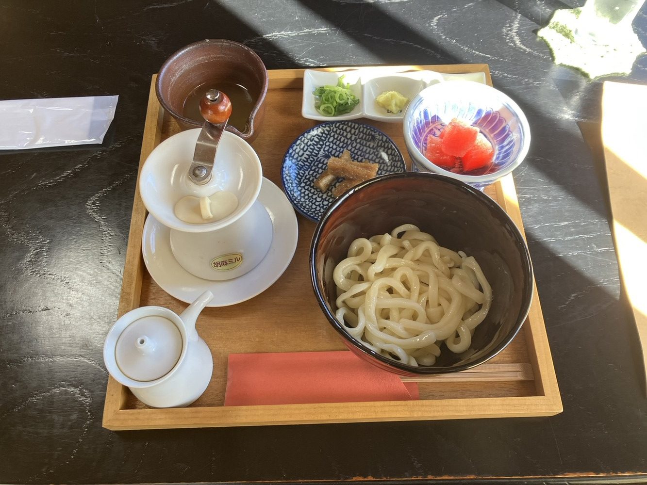 本場香川県から取り寄せた小麦を使用したうどんに、摺りたてのごまをかけていただきます。今まで食べたうどんの中でもとてもコシが強く、食べ応えのあるうどんでした。