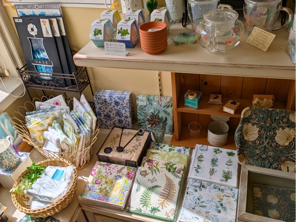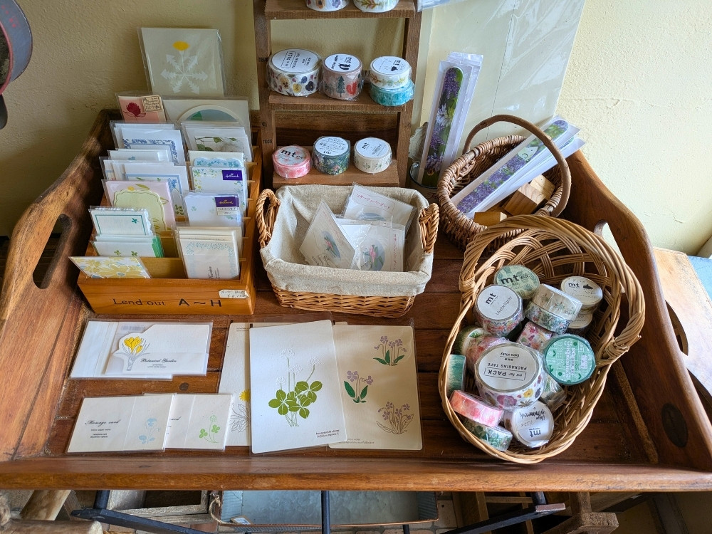 葉っぱをモチーフにしたデザインのオリジナル雑貨もあり、文房具と陶器が大好きな私には堪りませんでした。結果、押し花のようなデザインのマスキングテープを2つ購入。手帳やノートに貼るなど、使い道を考えるととても楽しくなります。
