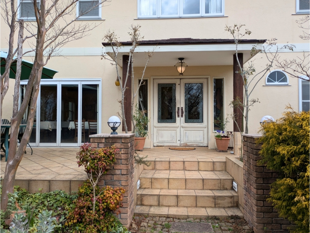 きれいに整えられたお庭を進んだ先に入り口があります。まるで、ヨーロッパのようなお庭の雰囲気に、非日常感を味わえるでしょう。