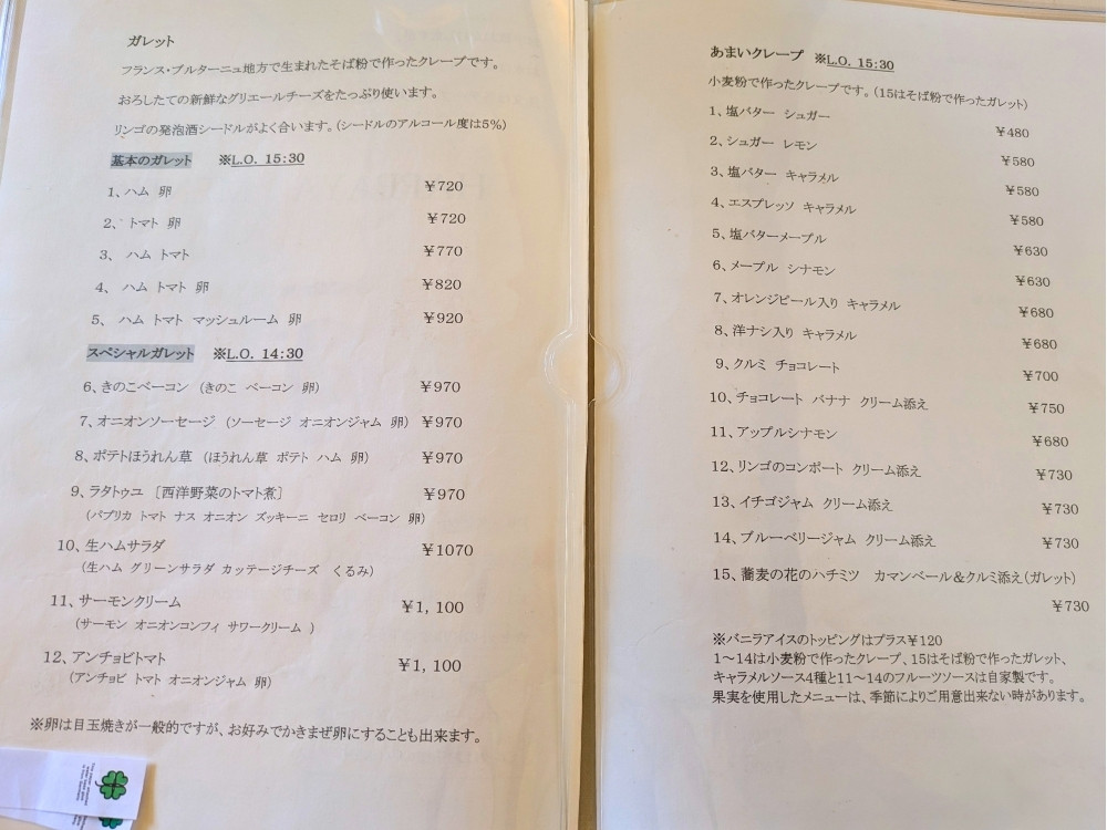 HAPPAYAさんは3~5月と9~12月のみ営業しており、利用できる期間が限られています。しかし、気候が比較的安定し、自然を楽しめる時期だからこそ、本格的でおいしいガレットを堪能できるのではないかと思います。