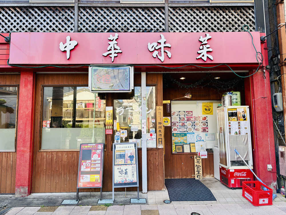 伊東駅から徒歩約3分、湯の花通りの路地を少し入ったところに「中華味菜」さんはあります。