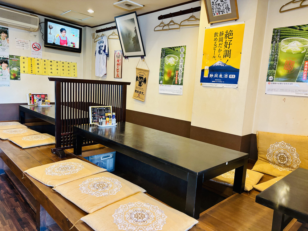 店内はカウンターとテーブル席がゆったり配置され、家族連れや一人客も気軽に入れます。昔ながらの温かな雰囲気と、活気ある厨房の音が、伊東の街の懐かしさを演出してくれます。