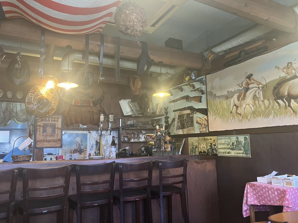 お店の雰囲気作りが素晴らしく、店内に入るとまるでアメリカの西部開拓時代に来たかのような雰囲気が魅力です。
