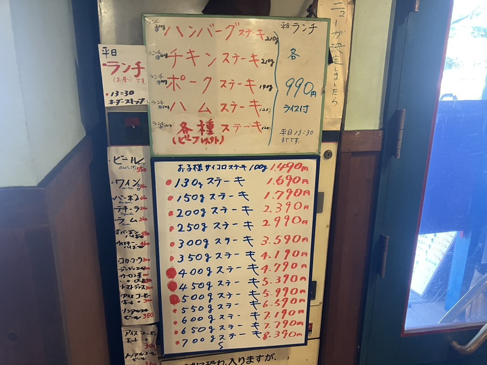 今回私はせっかくきたしと思い、奮発して牛のステーキ150g分を頼んでみました。