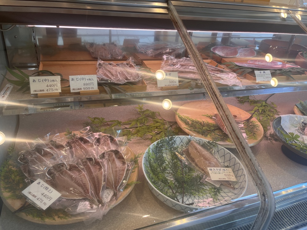 決して大きくないショーケースですが、きれいに処理された鮮度の良い干物が季節毎に並びます。