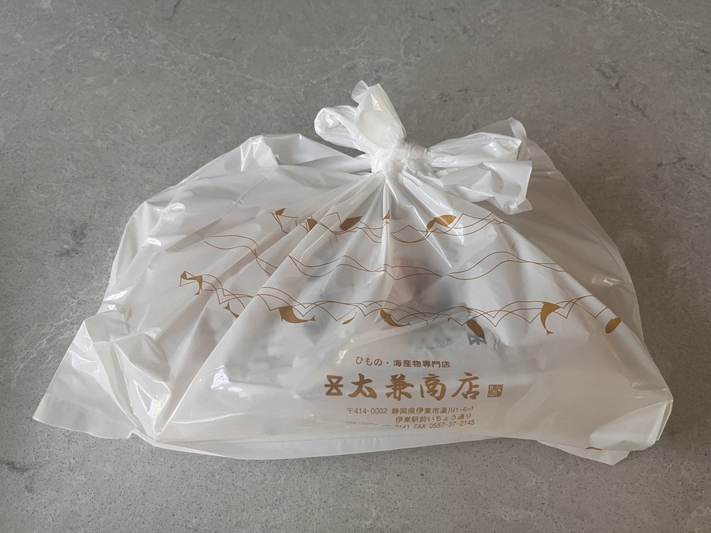 伊東市内でその日も土地探しをしており、現地見学をした帰り道、干物を買って帰りたいなぁ、と車を走らせながら窓の外を眺めていた際に、目をひいたのが太兼ひも乃さんでした。